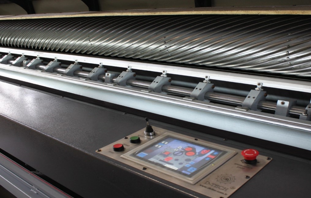 D-Tech halı tıraş makinası her türlü halıyı mükemmel şekilde tıraşlamakta olup, dünyadaki en iyi tasarım ve malzeme ile üretilmektedir. 4,4 metre ve 5,4 metre standart genişliğe sahip olup, müşterinin ihtiyacına göre tek, çift veya üç ünite olarak üretilebilmektedir. D-Tech halı tıraş makinesinin mükemmel tasarımı, kullanılan malzemenin kalitesi ve güçlü statik yapısıyla titreşimi minimize ederek yüksek kalitede kesim yapabilmektedir. Makine üzerindeki dokunmatik kontrol paneli makinenin en basit ve en kolay şekilde kullanılmasına olanak sağlar. Bıçak dönüş hızı, kesme derinliği, otomatik yağlama hızı, fırça baskı miktarı, dönüş yönü ve hızı, halı gerginliği ve çekim hızı bu noktadan rahatlıkla ayarlanabilir ve kontrol edilebilir. Diriler Makine olarak D-Tech halı tıraş makinesini halı tıraşlama teknolojisinin lideri yapabilmek için hala çalışmakta ve Ar-ge çalışmalarımızı devam ettirmekteyiz.