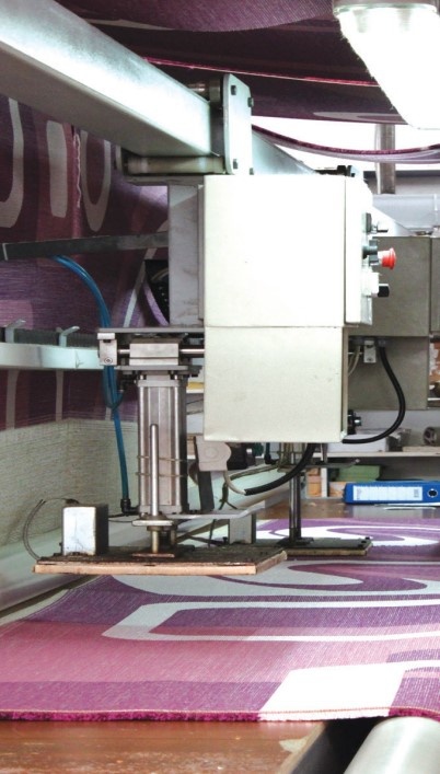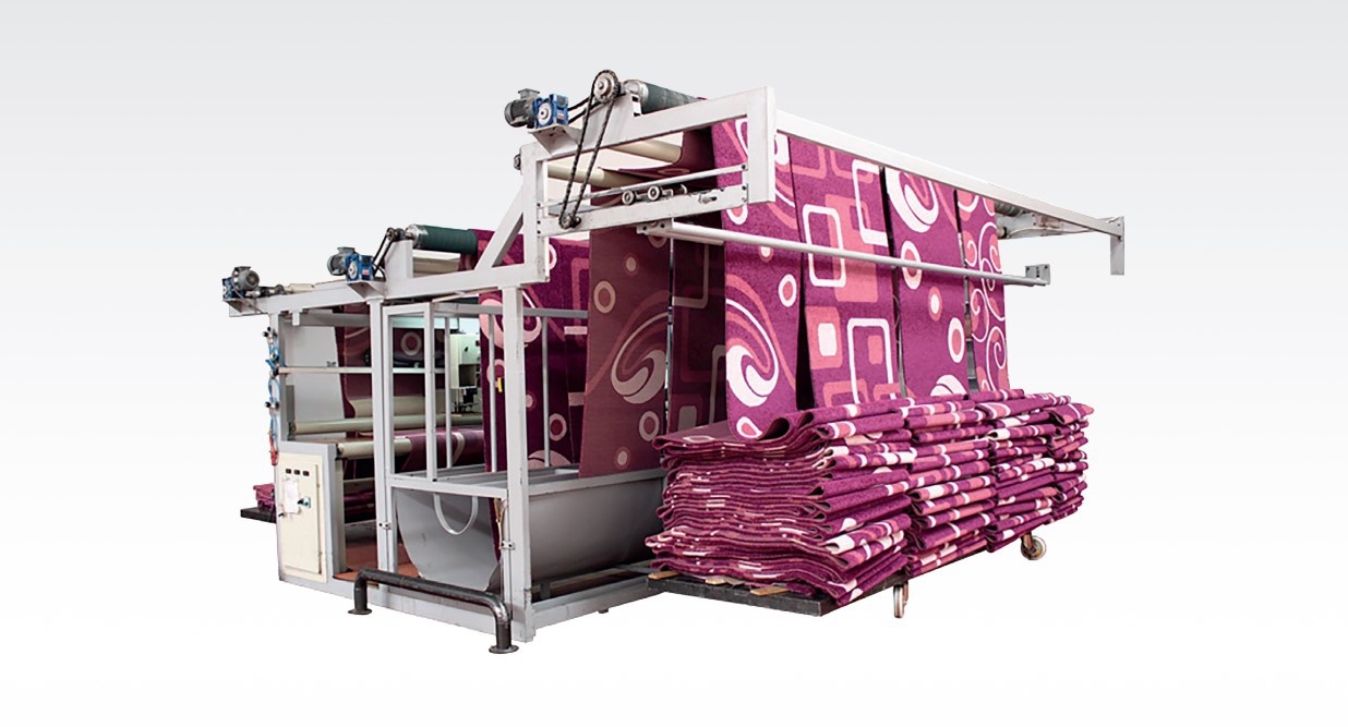4 - 5 metre enindeki halıların etiketlerini ve barkodlarını hız kontrollü olarak yapıştırmaya yarayan makinadır.